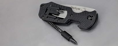 Kershaw Select Fire Multi-Function Pocket Knife, 4-piece Bit Set and Driver, 3.4" 8Cr13MoV Steel Blade, Manual Washer Folding EDC