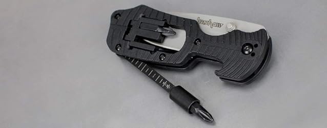 SELECT FIRE POCKET KNIFE: A blade-focused multi-tool, the Kershaw Select Fire Pocket Knife is a task-ready tactical knife with a folding, full-size steel blade. Features a 4-piece bit set, bit driver and ruler for ultimate versatility. DROP POINT PLAIN EDGE BLADE: Features a 3.4” drop point blade made from 8Cr13MoV steel that offers improved edge retention, strength and hardness. Bead-blasted finish gives the blade a matte look. VERSATILE HANDLE: The black, glass-filled nylon handle features a swing-out bit carrier with two flat head and two Phillips head bits. Pocketclip supports right- or left-handed carry in tip-down position. DESIGNED FOR SAFETY: This folding knife is equipped with a manual thumb-stud for quick and secure blade deployment, and features a liner lock that secures the blade in place. KERSHAW QUALITY: Since 1974, Kershaw has been committed to designing quality knives, built for those who take pride in what they carry. Select Fire measures 7.6” overall, with a 3.4” blade and 5 oz weight.