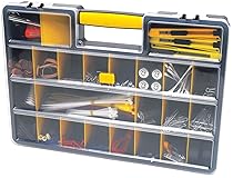 - The Performance Tool customizable compartment organizer box is an ideal storage solution for small hardware such as nuts, bolts, screws, and nails. The box features 26 adjustable compartments that can be customized to fit your specific needs. Its clear cover provides quick identification of the contents inside, while the secure latch keeps the compartments closed and prevents small hardware from spilling out. The built-in heavy-duty handle makes the box easy to carry and transport, and it also comes with color labels for easy organization by type or size. With its durable construction and versatile design, this organizer box is perfect for DIY enthusiasts and professional contractors alike.