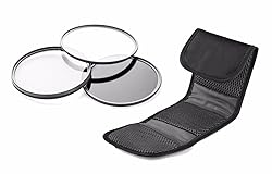 UV filter (ultraviolet) for protection against dust, dirt, scratches, fingerprints and the sun's ultraviolet rays. Circular Polarizing Filter. Used to increase color saturation, like darkening blue skies so that white clouds stand out. FL-D filter (fluorescent) for taking pictures indoors under fluorescent lights. This filter removes the greenish tint given off by fluorescent lighting. Compact protective carrying case for transporting and storing your set of filters. 10 year warranty