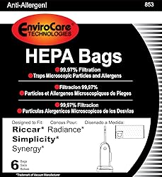 EnviroCare Replacement HEPA Vacuum Cleaner Dust Bag Designed to Fit Riccar Radiance and Simplicity X9 Uprights 6 pack Replaces Simplicity Part Number SXH-6 Replaces Riccar Part Number RXH-6 99.7% HEPA Filtration Manufactured by EnviroCare