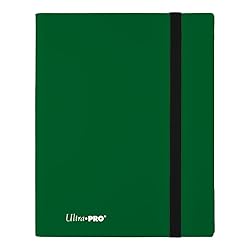 • 9-Pocket Forest Green PRO-Binder with embossed middle black web material gives cards a classic framed look. Side loading pocket design to prevent cards from easily falling out. Elastic strap holds the binder shut when not in use. All materials made from archival-safe, acid-free non-PVC material. Holds 360 cards in Ultra Pro Deck Protector sleeves.