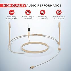 - The PylePro PMHM2 Universal Head-Worn Microphone is the ideal solution for clear, hands-free audio recording. Whether you are performing, presenting, or recording, this high-quality microphone captures sound with precision. Designed with an omni-directional pickup pattern, it captures audio from all directions, ensuring your voice is clearly heard, no matter how you move. The back electret condenser element provides crystal-clear sound, offering excellent voice reproduction for professional-quality recordings. Weighing only 12g (without the adaptor), this lightweight headset is comfortable for extended use, and its beige color ensures it blends seamlessly with your attire. The wired headset boom allows for a stable, secure fit, making it perfect for live performances or any environment where reliability is crucial. The microphone features a 3.5mm connector, with a ¼" adaptor included for easy compatibility with most audio equipment. The 1.2-meter cable provides enough flexibility for comfortable use, while the frequency response of 20Hz to 20KHz ensures a broad audio spectrum. With a max input SPL of 130dB and sensitivity of -45dB± 3dB, this mic captures every detail of your voice with clarity. It also comes with two windscreens and a 1/8" stereo jack to 1/4" adapter, ensuring you're ready for any setup.