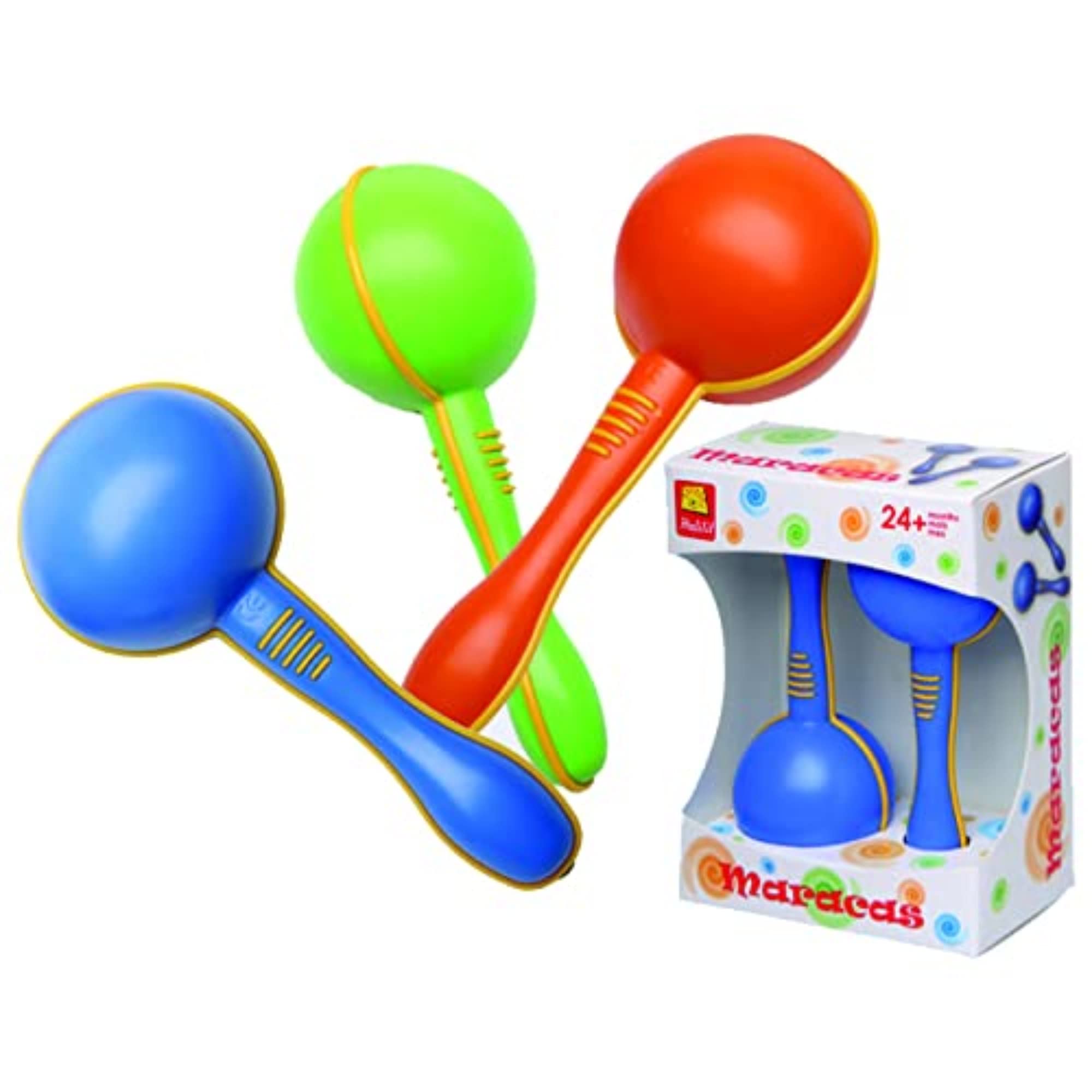 All wood tone drum with 3 sound tongues produces warm and appealing sounds when struck Beautiful design around the shell of the drum in fabric Certified for ages 24 months and up Sturdy Mallet with Wooden Handle and Rubber Head