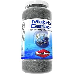 - MatrixCarbonª is a truly unique activated carbon. It is formed as a spherical bead for optimum hydrodynamics, and will not pack. It permits maximum water flow and contact with its high density of macroporous binding sites. MatrixCarbonª has a very low ash content as indicated by its minimal impact on pH. Even when added to distilled water, it does not raise pH above all carbons contain phosphate, regardless of false claims to the contrary, MatrixCarbonª has the lowest detectable leachable phosphate content of all major carbon brands tested. MatrixCarbonª outperforms other high grade carbons by at least two-fold when compared for total capacity to remove aquarium organic matter, rate of adsorption, and duration of use. This product is sold by volume. Cited weight is minimal weight 500 mL will easily treat 800 L (200 gallons*) for several months. MatrixCarbonª is very clean and nearly dust free. For best results, MatrixCarbonª should be placed so as to maximize the flow of water through it. It may be used in a canister filter, chemical filtration module, box filter, or any high flow area of a trickle filter. Royal Item Number: ASM103