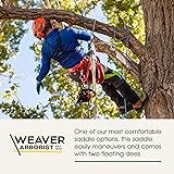 - One of our most comfortable saddle options, this saddle easily maneuvers and comes with two floating Dees. Floating Dees provide more freedom of movement. Two floating dee style is designed specifically for split-tail climbing. Dees are made from forged aluminum. Fixed position, angled side dee rings feature a two bar design and offer easy access - you can snap in with just one hand! saddle backs feature two rounded nylon loops that are covered with clear rubber tubes that help resist excess wear. Each loop will hold up to 15 lbs. Of accessories. Two additional Dees are located at the bottom of the waist back for attachment of one of our Ditty bag options or a first aid kit. Feature adjustable accessory leg straps that keep your padded leg straps positioned for optimum comfort. Front strap is reinforced with neoprene for extra durability. Extra wide 6" rubberized belting back helps provide firm support. Waist back is foam filled and lined with soft oil tanned top grain steer hide leather for added comfort. Features a loop for holding Carabineers and two nylon utility straps with a chrome brass 200 snap and a 2" nickel plated ring keep to tools close at hand. The 2" nylon leg straps feature slip-on, foam filled, leather lined pads for extra comfort. Dees at front and back offer easy attachment of suspenders (08-98122, sold separately). not to be used for fall arrest. Weight approximately 6 lbs. (Medium size). available in small, medium, large and extra large sizes.