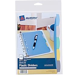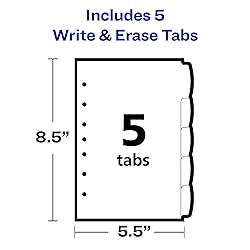 - Write, erase and reuse these Avery 5-Tab Write & Erase Mini Dividers to your heart’s content. Each mini binder divider is made of durable, tear-resistant PVC-free plastic designed to hold up to frequent referencing. Write directly on the divider tabs with a ballpoint pen or pencil, and erase when you’re ready to repurpose your page divider for the next project. Each divider in this 5-tab set features a fun pastel color that is sure to stand out when you open your binder, and is perfect for color coding and quick identification. The 5 1⁄2” x 8 1⁄2” mini binder dividers with tabs are 7-hole punched for immediate use in 3 ring and 7 ring mini binders and planners. Built to withstand everyday use, this set of write-on 5-tab dividers is great for homework organization, personal finance planning, recipe binder dividers, as a coupon organizer, or anything else that needs sorting.