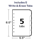 Avery Write & Erase Durable Plastic Mini Dividers for 3 Ring Binders and 7-Ring Binders, 5.5" x 8.5", 5-Tab Set, Multicolor, 1 Set (16180)