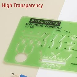 Standard symbols for depiction of circuits in electrically controlled machinery and electric automation of production Ansa Y32. 2 specifications 8" X 3 ¼" template Made of green butyrate, dimensionally stable plastic