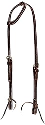 - Made from single-ply 5/8" burgundy latigo leather, this headstall features a simple design at a great price. This soft, supple latigo leather headstall has double cheek adjustments and alum tanned leather lace water tie bit ends. Durable nickel plated hardware. Horse size.