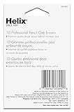 - Experience the pinnacle of erasing technology with Helix Professional Pencil Cap Erasers. These oversized, latex-free erasers are crafted for maximum durability and efficiency, ensuring that your papers remain pristine and legible. With a design that fits most pencils, these erasers remove lead with ease, leaving behind minimal dust and no smudges or tears. The high-quality, hi-polymer material ensures a clean finish every time, making them a staple for students, artists, and professionals. Helix is dedicated to providing innovative, safe, and products, making these erasers the smart choice for anyone seeking quality and sustainability in their stationery collection. With a pack of 10, you'll have a long-lasting supply for all your writing and correction needs.