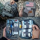 Textile Imported Pockets: 1 slip, 1 zip, 1 exterior Larger version of the popular Pocket Orgainzer. Compact 5” x 7” x 2” size Drops into or attaches onto backpack or bag Full clamshell opening main compartment with dual zips inside right: zipper pocket; elastic orgaizer with 6 divisions