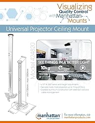 - Easily put a projector in place and keep it in prime position. Manhattan Universal Projector Ceiling Mounts hold projectors stable and steady with precise tilt, 360 Degree swivel and height adjustments that keep images clear, sharp and defined. Constructed of lightweight, quality aluminum materials, Manhattan Universal Projector Ceiling Mounts fit a range of models with a secure, confident and balanced overhead installation. The ceiling plate fits a range of ceiling slopes. Internal cable management helps conceal unsightly cords and connections for a professional, finished appearance. Ideal for home theater, auditorium, office, retail, classroom, video conferencing and other commercial applications, Manhattan Universal Projector Ceiling Mounts help focus attention where it matters most.