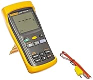 • The Fluke 50 Series II digital thermocouple thermometer is used for applications requiring a broad range of temperatures, including furnaces, kilns, freezers, and other industrial applications. This thermometer measures temperatures in Celsius, Fahrenheit, or Kelvin via a Type K, Type J, Type T, Type E, Type N, Type R, or Type S thermocouple probe. It comes with one or two Type K bead thermocouple probes with 40" cables that measure from -40 to +260 degrees C (-40 to +500 degrees F). It can store up to 500 points of data for analysis and monitoring, and it has an infrared communication port for exporting data to a computer for analysis. This thermometer provides the relative time of minimum, maximum, and average temperature measurements for monitoring. It has an offset function that allows the operator to compensate for thermocouple errors and increase accuracy. The thermometer body protects against splashing water and dust, and it comes in a holster that absorbs impact to help protect against damage if dropped. The thermometer enters sleep mode after 20 minutes of inactivity to help preserve battery life. It conforms to National Institute of Standards and Technology (NIST) standards for compliance with regulations. The European Conformity (CE) marking indicates compliance with applicable European Union (EU) directives, and CSA mark indicates compliance with applicable Canadian Standards Association directives. This thermometer is suitable for measuring the temperature of equipment, systems, and processes in industrial and manufacturing environments.Specifications Type K temperature range -200 to +1372 degrees C (-328 to +2501 degrees F) Type J temperature range -210 to +1200 degrees C (-346 to +2192 degrees F) Type T temperature range -250 to +400 degrees C (-418 to +752 degrees F) Type E temperature range -150 to +1000 degrees C (-238 to +1832 degrees F) Type N temperature range -200 to +1300 degrees C (-328 to +2372 degrees F) Type R and Type S temperature range 0 to 1767 degrees C (32 to 3212 degrees F) Temperature accuracy above -100 degrees C Type K, J, T, E, and N: + or - 0.05% + 0.3 degrees C; Type R and S: + or - 0.05% + 0.4 degrees C Temperature accuracy below -100 degrees C Type K, J, E, and N: + or - 0.20% + 0.3 degrees C; Type T: + or - 0.50% + 0.3 degrees C Display resolution 0.1 degrees C / degrees F / K <1000 degrees; 1.0 degrees C / degrees F / K > or = 1000 degrees Applicable standards NIST-175 Power Supply (3) AA Batteries Weight 400g Dimensions 173 x 86 x 38mm (H x W x D) H is height, the vertical distance from the lowest to highest point; W is width, the horizontal distance from left to right; D is depth, the horizontal distance from front to back.Digital thermocouple thermometers measure the temperature of air, liquids, or surfaces. They may measure temperature in Celsius, Fahrenheit, or both. Thermocouple thermometers are composed of two conductors of different metals, usually alloys of the same metal, which touch at the sensor end of the thermometer. The difference in conductivity between the two metal pieces produces a voltage flow between the sensor end and the open end of each conductor, which can be used to determine the temperature. Different alloys are used for different temperature ranges. Thermocouple thermometers are used in applications that require a large temperature range and do not require a high degree of accuracy. These thermometers are used in kilns, turbine exhaust systems, and furnaces.Fluke Corporation manufactures electrical testing tools and software for industrial and commercial applications. The company, founded in 1948, is headquartered in Everett, WA.What's in the Box?Fluke 50 Series II digital thermocouple thermometer(1) or (2) 80 PK-1 Type K thermocouples