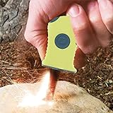 Dimensions: 2.3" L x 1.25" W x 0.6" D and weighs 08. oz Reliable: Generates sparks three times hotter than a normal match; spring-loaded flint based bar will last over 100 strikes; Durable plastic to stand up to rugged use; Flint rod collapses into case Convenient: Lightweight and designed for one-handed use; Ignites a wide range of tinders; sparks can be generated in rain or other adverse weather conditions Be prepared: Ideal fire starter tool for backpacking, hunting, camping, survival and general emergency preparedness