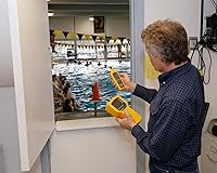 - Quickly and conveniently take accurate humidity and temperature readings with the Fluke 971.The Fluke 971 is invaluable for facility maintenance and utility technicians, HVAC-service contractors, and specialists who assess indoor air quality (IAQ). Lightweight and easy to hold, the Fluke 971 is the perfect tool for monitoring problem areas. With a rugged holster and protected sensor, the Fluke 971 is built to perform and made to last. Backlit dual display of humidity and temperature. Measures dew point and wet bulb temperatures. 99 record storage capacity. Ergonomic design with belt clip and protective holster. Quick-response capacitance sensor. Compact and lightweight. Temperature range from -20 to 60 degree C. 0 to 45 degree C is +/-0.5 degree C and -20 to 0 degree C and 45 to 60 degree C +/- 1.0 degree C. Relative humidity from 5 to 95 percent. Min/Max/Avg Data hold. Low battery indicator. 5 to 95 percent RH relative humidity range. Measures 60mm width by 194mm height by 34mm depth. 4 AAA alkaline battery.
