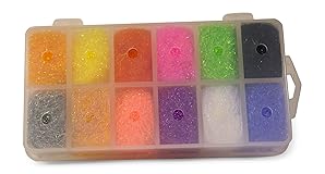 Ice dubbing assortment Stores and dispenses dubbing Comes with 12 colors 12 drilled compartments Clear box