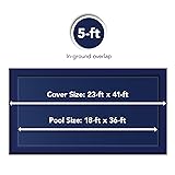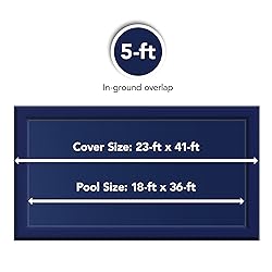 8-YEAR RECTANGULAR IN-GROUND WINTER COVER – Designed for in-ground rectangular pools, this inground pool cover provides reliable, season-long protection. Durable polyethylene construction offers strength and a solid barrier against winter elements. PROTECTS POOL FROM SUN, SNOW & DEBRIS – The solid design of this rectangle pool cover keeps out leaves, dirt, and other debris, while the black underside reduces algae growth by limiting sunlight exposure. Perfect for maintaining pool cleanliness. DURABLE MATERIALS & HEAT-SEALED SEAMS – Built with a rugged 7x7 scrim count and precision heat-sealed seams, this rectangular pool cover resists tearing, sun damage, and harsh winter weather, helping extend its lifespan over multiple seasons. 4-FT OVERLAP FOR A SECURE FIT – The overlap design allows the pool winter cover to be securely fastened while minimizing stretching. Metal grommets with steel cable and locking winch are placed every 2 feet for even tension and easy installation. 4-FT OVERLAP FOR A SECURE FIT – The overlap design allows the pool winter cover to be securely fastened while minimizing stretching. Metal grommets with steel cable and locking winch are placed every 2 feet for even tension and easy installation. Pool size: 18 feet x 36 feet Cover size: 23 feet x 41 feet Number of 8-Feet water tubes needed: 16 Integral cover loops to secure water tubes 5 foot overlap to ensure there is no stretching or ripping