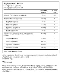 Full-spectrum vitamin E complex with mixed tocopherols and tocotrienols. All natural and suitable for vegetarians Because vitamin E is an antioxidant, it can reduce the damage that free radicals cause to the body and also support eye health and a healthy blood system Gamma tocopherol has powerful antioxidant properties. It works against some of the most damaging free radicals, such as nitrogen dioxide (found in exhaust and cigarette smoke) and peroxynitrate (formed during regular cellular metabolism) Features Tocomin, a full-spectrum palm tocotrienol complex with the highest ratio of alpha-, beta-, gamma, and delta-tocotrienols. Tocomin is non-GMO and certified kosher. Free Of Milk, eggs, peanuts, tree nuts, crustacean shellfish, fish, gluten, titanium dioxide.