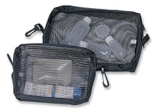 Mesh sides for visibility of contents Ideal for storing essentials that are accessed frequently Zippered closure Snap hook on one end to attach to backpacks, etc. Color: black, Size: 6" x 8"