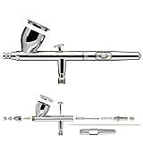 Set Includes Iwata Eclipse HP-CS airbrush, Iwata 10' braided hose, Medea airbrush cleaner 1 oz., Createx Cerulean Blue paint 1 oz., and step-by-step beginner’s airbrush guide. Ultimate Versatility – Achieve ultra-fine lines to broad sprays with the Iwata Eclipse HP-CS, perfect for auto graphics, model painting, cosplay, textiles, crafts, and more. Easy Maintenance Design – Features an exclusive compression-fit E3 nozzle (no threads!) and quick-flush cutaway handle for fast needle access and simple cleaning. High-Flow Performance – Gravity-feed 0.24 oz (7 ml) fluid cup paired with an E3 nozzle delivers smooth atomization with less thinning—great for a variety of paint types. Durable, Professional Quality – Built with a break-resistant spring-steel needle and solvent-resistant needle packings for long-lasting use with solvent, water-based or pearlized paints. Beginners to Experts: Easy to use yet offers advanced control for professionals Versatile for All Applications – Ideal for model painting, cosplay, lure painting, fine art, textiles, automotive graphics, crafts, and more. Works with thin to thicker viscosity paints. Includes head cap spanner and Iwata Lube for maintenance; optimal working pressure: 25–35 psi.