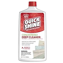 REMOVES WAX BUILD-UP: Will remove wax, polymer & acrylic finishes TILE & GROUT CLEANER: Effectively cleans grout and ground in dirt on contact USE FOR MOST FLOOR SURFACES: Specially formulated for cleaning of hardwood, laminate, LVT-Luxury Vinyl Tile, LVP-Luxury Vinyl Plank, tile, vinyl and stone floors NO HARSH FUMES: Unlike most wax strippers, Quick Shine Concentrated Deep Cleaner is ammonia free COMPACT BY DESIGN: Dilute 1 cup of Concentrated Deep Floor Cleaner with 1 gallon of hot water for heavy wax build-up or ½ cup per 1 gallon warm water for general cleaning Packaging may vary