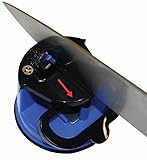 RoyalCraft TM Knife Sharpener. Unique moveable Power Grip suction bottom. Handle activates PowerGrip Suction - attaches to any surface. Tungsten carbide sharpening tool provides superior edge. Only one hand required -creates perfect edge on any blade. Great for hardened knives, serrated knifes, gardening shears, lawnmower blades, and more. Exclusively by USA Cash and Carry.