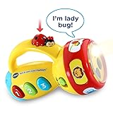 Ilumina y aprende con la linterna Color Spin and Learn de VTech. La linterna juguete brilla con un arcoíris de cinco colores y reproduce canciones y música emocionantes. Cambia los colores y escucha cinco sonidos divertidos de animales mientras giras el dial y aprende sobre colores y animales. Presiona el atractivo botón de la mariquita para escuchar frases y sonidos que enseñan números con melodías juguetonas o cuenta y aprende los números 1, 2 y 3. Más de 50 canciones para cantar, música, sonidos y frases involucran el aprendizaje divertido. Con su mango fácil de agarrar, tu niño pequeño querrá llevar esta linterna juguete de aprendizaje en cada aventura.