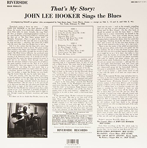 UPC: 025218053815 Artist: John Lee Hooker Album: That's My Story: John Lee Hooker Sings the Blues Label: Riverside Format: LP Vinyl Description: Backed by jazz greats like Sam Jones and Al Harewood, this 1960 Riverside session delivers stripped-down, raw blues. *That’s My Story* is a masterclass in minimalism and mojo. Tracklist: Side A 1. I Need Some Money 2. Come On and See About Me 3. I'm Wanderin' 4. Democrat Man 5. I Want to Talk About You 6. Gonna Use My Rod Side B 1. Wednesday Evenin' Blues 2. No More Doggin' 3. One of These Days 4. I Believe I'll Go Back Home 5. You're Leavin' Me, Baby 6. That's My Story