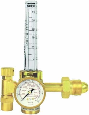 GENTEC 191AR-60 medium duty flowmeter regulators are designed for MIG & TIG applications to provide accurate regulation of gas flow. They are also ideal for commercial, industrial and laboratorial applications. Combination of regulator and flowmeter as one compact unit. Regulator is preset to 50PSIG. Piston-type construction. Body machined from class "A" brass. Internal pressure relief valve. Polycarbonate flow tube and hood are impact resistant for maximum durability and service life. Calibrated for argon, Co2, helium, nitrogen, air, and 75% argon/25% CO2 mix gases. Backpressure compensated o ensure accurate readings when line restrictions are present. Sintered bronze inlet filter. Conforms to CGA E-4 standard for gas pressure regulators.