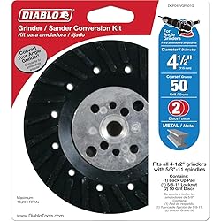 - The Diablo’s 4-1/2" Grinder to Sander Conversion Kit transforms your angle grinder into a powerful sander, making it a versatile tool for various applications. This complete kit includes a back-up pad, a 5/8-11 locknut, and two coarse 50-grit fiber discs, allowing you to seamlessly switch from grinding to sanding. Engineered for metal sanding tasks, it excels in surface preparation, weld blending, and material removal. Diablo’s innovative design ensures increased productivity, durability, and extended sanding life, providing superior results. Ideal for professionals and DIY enthusiasts alike, this kit optimizes the performance of your grinder with ease.