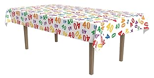 Plastic Imported 40 BIRTHDAY PARTY DECORATIONS: Decorate for a fun birthday celebration with this plastic table cover and party decor. The multicolored number 40s make for an exciting 40th birthday party everyone will enjoy. VERSATILE TABLE COVER: Place this plastic table cloth over a table or on the wall to create a fun photo backdrop. This table decoration is perfect for picnic tables, decorating a dining table, or for outdoor patio tables. FITS STANDARD TABLES: This 40th birthday tablecover measures 54 inches long by 108 inches wide to fit standard rectangular tables. Made of plastic for an easy disposable tablecloth and clean up. GREAT FOR BIRTHDAY THEMED PARTIES: Decorate your home or event space for a fun birthday party celebration with these party supplies. CELEBRATE LIFE WITH US: Since 1900 The Beistle Company’s mission has remained the same: to help people around the world celebrate life’s events by creating fun, durable products using the finest materials.