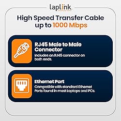 High Speed Data Transfer for PCmover: Enjoy ultra-fast transfer rates with this Ethernet cable, offering speeds of up to 1,000 Mbps depending on your network interface card. Perfect for ensuring quick, reliable data transfers. Please note that this cable is only used as a data transfer cable with our PCmover software. Heavy-duty Ethernet Cable: Built with durability in mind, this heavy duty ethernet cable is ideal for long-lasting use. The RJ45 ethernet connector on both ends ensures a stable and secure connection for uninterrupted transfers. Compatible With All Versions Of PCmover: Designed for use with all versions of Laplink PCmover software (not included), this data cable provides a dependable solution for migrating data between PCs without hassle. 7-foot Flexible Cord: This ethernet transfer cable offers flexibility with its 7-foot length, giving you the ideal amount of reach for various setups. It ensures an easy connection between devices for seamless data transfers. RJ45 Connectors For Stability: Equipped with male RJ45 to male RJ45 cable connectors, this ethernet transfer cable ensures reliable, fast, and efficient data transfer between your devices, whether for business or home use.