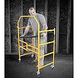 Versatile Scaffolding Platform: Ideal for both professional and DIY use, use this mobile platform as an elevated ladder to access hard-to-reach areas or as a handy rolling cart for easy storage and access of construction materials Adjustable Platform Height: Easily adjust the height of the platform to reach various working levels, making this scaffolding ideal for a range of tasks Portable and Foldable Design: Equipped with folding features for easy transportation and storage, and rolling 4-inch locking wheels to move smoothly between tasks Safety Features: Includes a locking mechanism on the wheels and adjustable height for added stability and security while you work, ensuring safety during use Complete Scaffold Set: Complete set includes (1) portable scaffolding platform and (4) 4-inch double lock non-marking caster wheels