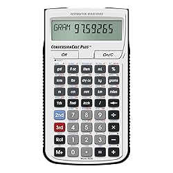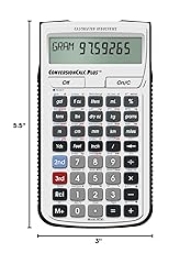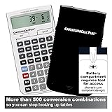 - The ConversionCalc Plus is an easy-to-use and powerful handheld calculator that provides more than 500 conversion combinations using 70 built-in Standard, Metric and other units of measure. Work in and convert between linear, area and volume units, plus weights, temperatures, velocity, flow rates, pressure, torque, energy and power. Don’t waste time looking up tables in books and online. Get quick, accurate solutions for all your professional conversion needs. With the ConversionCalc Plus you can enter and convert everything from very large units to micro- and nano-units -- kilograms and tons, drams, scruples, grains, microliters, even tablespoons and cups. Virtually any conversion is at your fingertips with the ConversionCalc Plus. It includes a slide or snap-on cover with attached Quick Reference Guide, an illustrated Pocket Reference Guide/User Guide stored in an onboard pocket (Spanish available as download), one long-life (CR2016) battery and a one-year limited . Ideal for Health Care Professionals, Scientists, Pharmacists, Nutritionist, Lab Techs, Engineers, Specifiers and Importers/Exporters. Button-Cell Battery Safety Compliant Design -- This product uses a button-cell battery housed in a compartment secured with a tool-required fastener. The battery is not accessible during normal use without a tool, supporting alignment with applicable U.S. consumer product safety requirements for button-cell batteries.