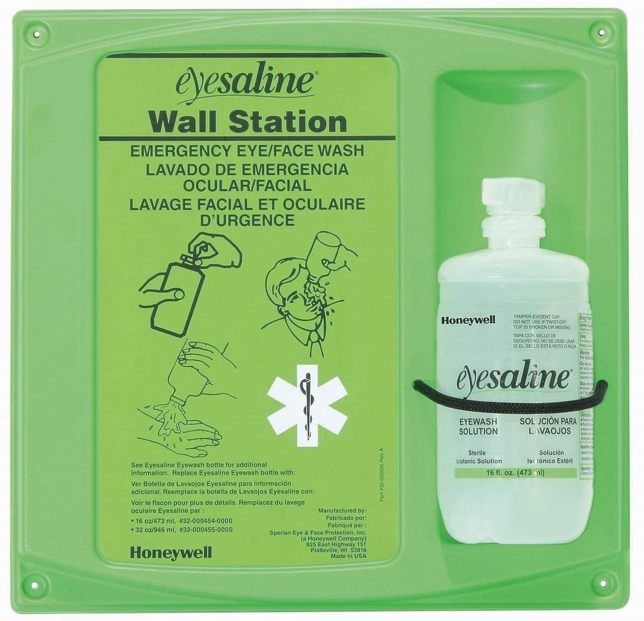 - Ready for immediate use. 32 oz. bottle. Sold 12 bottles per case. Squeeze bottle filled with buffered isotonic Eyesaline solution.