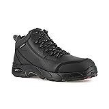 - Reebok Work RB4555 Tiahawk - Waterproof Sport Hiker with Extra Wide Widths, Composite Toe, Electrical Hazard Protection and Aircom™ Heel Airbag that meets ASTM F2413 Safety Standards. Footwear Type: Waterproof Sport Work Boot Toe Type: Composite Upper Material: Water Resisting Leather Color: Black Lining: Moisture Wicking Nylon Mesh and Waterproof Membrane Insole: EVA Cushion Removable Footbed with Sponge Rubber Heel Wedge Outsole: Direct Attached Rubber Bottom with Polyurethane Cushion Midsole, Wrap Around Shank Stabilizer and Heel Airbag Special Features: 100% Non-Metallic, Heel Airbag Features: ASTM F2413, Metal Free, Waterproof, Aircom™ Air Comfort Technology, Extra Wide Widths, Electrical Hazard Protection, Composite Toe