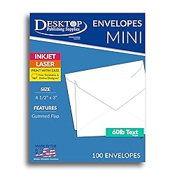 Mini Envelopes, 4 1/2" x 3" White - 100 Envelopes Made From 24lb Bond White Paper (90 gsm) Measures 4 1/2" x 3" each Inkjet & Laser Printer Compatible
