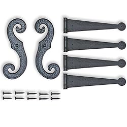 - Decorative Hinges and 'S' Hooks are an inexpensive way to give your shutters that truly authentic look. They can be installed on any new or existing shutters, from any manufacturer. They work with any style and material shutter. Let the Decorative Hinges and 'S' Hooks extend the beauty of your exterior shutters.