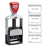Features the date and 4 popular key phrases for office use Red and Blue Ink.; 1-1/16" x 5/8" impression area.; 3 Phrases: PAID, RECEIVED FAXED.; Date band contains 5 years.;