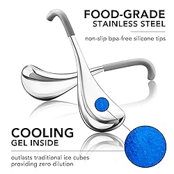 - Enjoy cold beverages without the dilution from ice. These chilling wands contain a non-toxic cooling gel inside allowing them to withhold cold temperatures for longer and outlast traditional ice cubes. Because these chilling wands never melt you can enjoy a more flavourful and colder drink. Keep the wands in the freezer - always ready to cool your drinks.Great for use with sodas, juices, wines, liquor and many more!Stem is hook shaped to hang off the side of most glasses.Use again and again.Includes: 2 chilling wands with case. | Dimensions: 1.8 x 1.8 x 5.7 in (4.5 x 4.5 x 14.5 cm) | Material: stainless steel & silicone | Washing: hand wash
