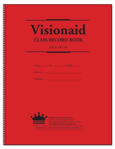 • Class Record Book, 9-week, 8-subject, large squares, 34 names per page; Size 9.25"w x 12.25"h; White stock with green text, red leather-like cover