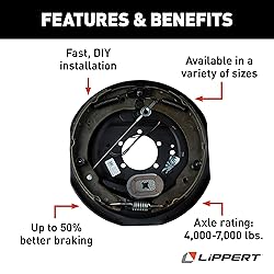 EASY TO INSTALL — With no actuator or hydraulic lines, installation is easier than hydraulic brakes. Electric actuator (sold separately) SELF-ADJUSTING — Brakes self-adjust during every forward stop, providing up to 50 percent better braking distance MULTIPLE OPTIONS - Available in left hand (road side) and right hand (curb side) and multiple wheel sizes and axle ratings BRAKE SAFETY - Helps prevent premature brake line and magnet wear for safer travels REPLACE WITH LIPPERT - Lippert helps you take the guesswork out of getting your RV back on the road with exact-match parts designed for your RV Helps prevent wear and tear