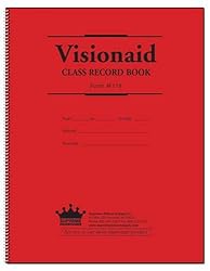 - Class Record Book,Visionaid 18-Week Class Record Book, ideal for colleges or universities on semester system. Pages have blue and red text. Space provided for recording up to 6 days per week, multiple seating charts. This book has a red, leather-like cover; Size 7.75"w X 11"h; White stock with red and blue text