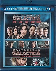 • Battlestar Galactica: Razor: On the eve of a devastating Cylon attack, officer Kendra Shaw reports for duty on the battlestar Pegasus. When mankind's future is forever changed on that fateful day, Kendra is reshaped into a "razor"—a tool of war—under the ruthless guidance of her commander, Admiral Cain. Battlestar Galactica: Razor tells the untold story of Pegasus and provides chilling clues to the fate of humanity as the final chapters of the Battlestar Galactica story unfold. Battlestar Galactica: The Plan: The Cylons began as humanity's robot servants. They rebelled and evolved and now they look like us. Their plan is simple: destroy the race that enslaved them. But when their devastating attack leaves human survivors, the Cylons have to improvise. Battlestar Galactica: The Plan tells the story of two powerful Cylon leaders, working separately, and their determination to finish the task. Bonus Content: Disc 1 - Battlestar Galactica: Razor: Deleted ScenesThe Look of Battlestar GalacticaMy Favorite Episode So FarSeason 4 Sneak PeekSeason 4 TrailerMinisodesFeature Commentary with Executive Producer Ronald D. Moore and Writer Michael TaylorU-Control Disc 2 - Battlestar Galactica: The Plan: Deleted ScenesFrom Admiral to Director: Edward James Olmos & The PlanThe Cylons of The PlanThe Cylon AttackVisual Effects: The Magic Behind The Plan Battlestar Galactica TriviaFeature Commentary with Director/Star Edward James Olmos and Executive Producer/Writer Jane Espenson