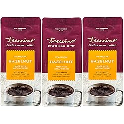 Teeccino Hazelnut Chicory Coffee Alternative - 11 Ounce - Ground Herbal Coffee That’s Prebiotic, Caffeine Free & Acid Free, Medium Roast, (Pack of 3)