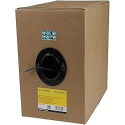 CAT5e ETHERNET CABLE: 1000 ft. (304,8m) Solid 4 Pair UTP Cat5e cable is optimized for enterprise 1000 Mbps networks; 350 MHz frequency range enhances throughput capacity; Supports Power over Ethernet (PoE) QUALITY CONSTRUCTION: High-quality copper conductors enable a precise fit to minimize wear and signal loss; 24 AWG solid copper supporting a diverse range of Ethernet applications SAFETY AND RELIABILITY: Carefully constructed and tested, to keep Near End Crosstalk (NEXT) well within acceptable limits; Reliable Ethernet connections in applications requiring CMR rated Cat5e Cable APPLICATIONS: Ideal for riser installations (in-wall, between floor, elevator shafts, etc.) where CMR fire rating is required.; Can be used for network installation at home, office or educational institution SPECIFICATIONS: CAT5e; Black; 1000 foot (304,8 meter); 10/100/1000Mbps; 350 MHz; PoE; UTP; 24AWG Pure Bare Copper; CMR Rated (Riser); TAA