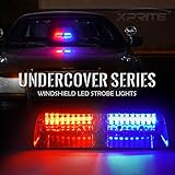Xprite Red Blue LED Emergency Dash Strobe Light, Interior Windshield Safety Warning Police Lights w/Suction Cups, 12V Windshield Visor Light Bar for Police Law Enforcement Firefighter Vehicles Trucks