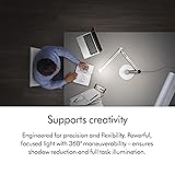 Intelligent lighting in multiple formats. Adapts and transforms with your day. Multiple lights in one: Task, Indirect, Feature, and Ambient. Intelligently tracks local daylight. Automatically adjusts brightness and color temperature so you get the right light for the right time of day, anywhere in your home. Designed to improve visibility¹ and help reduce eyestrain. Powerful, high-quality light with glare control and low optical flicker.² Personalize your light for your time of day, age, and task with the MyDyson app.³ Heat Pipe technology efficiently cools the LEDs, giving you light quality that lasts 60 years.⁴ 3-Point Revolve Motion allows the light to rotate at three separate points - the stem, elbow, and head - allowing you to precisely direct light wherever you need it. With magnetic touch-glide docking, the optical head seals to the stem to create a comforting orange glow. Motion sensor switches light on when you're near, and off when you're away for 5 minutes to conserve energy. Energy Star Certified.