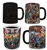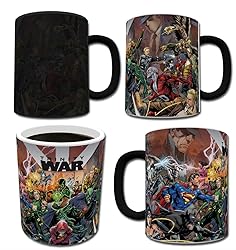 - Bring the action of DC Comics’ trinity war to every hot cup of coffee with this Morphing Mugs heat-sensitive mug. This collectible mug captures the battle between the Justice League, Justice League of America, and Justice League Dark, and features a collage of characters from all sides. The exterior of this officially licensed 11oz mug transforms from black as hot liquid is added, revealing the hidden image in full vivid colors. The exterior of this officially licensed 11oz mug transforms from black as hot liquid is added, revealing the hidden image in full vivid colors. While this mug may be used in the dishwasher or microwave, for the longest lasting, highest quality product, we strongly recommend against it.